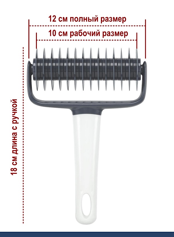 Ролики легко снять и вернуть на место - так вы сможете легко регулировать размер при нарезке теста, макисмальная ширина 10 см. Общая длина ролика с ручкой 17 см