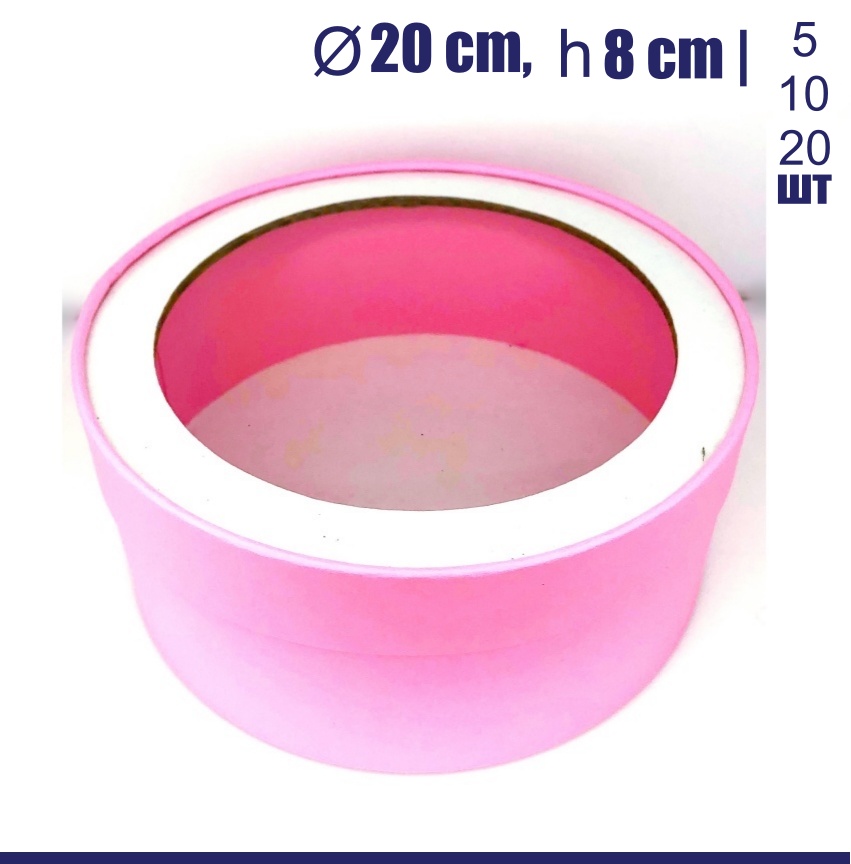 Коробка для выпечки круглая с окном (шайба) 20•8 см - купить упаковка 5 - 25 шт. Розовая. Крышка+дно. Гарантия качества. Быстрая доставка по Москве, России и миру. Скидка на первый заказ и постоянным покупателям 5%. Ищите промокод для скидки на нашем сайте. Служба заказов: WhatsApp/Viber/Telegram +7(977)807-57-53