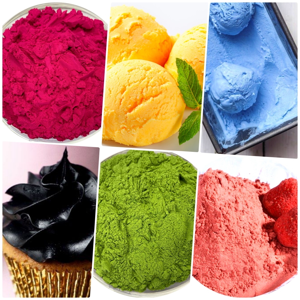 Жиро- и водорастворимы, выбирайте дозировку для интенсивности цвета. Обычная дозировка 3-4 г на 100 г окрашиваемой массы. Растворяются мгновенно без остатка и осадка.