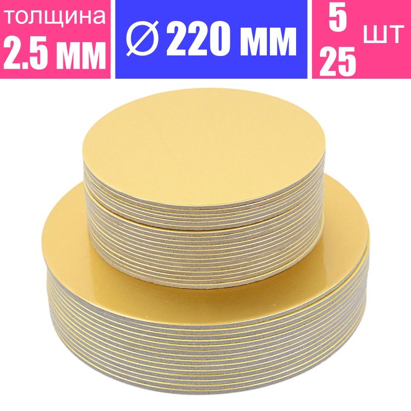 Подложка для торта усиленная толщина 2.5 мм, размер Ø 220 мм, ламинация золото - купить. Розница от 5 шт, опт от 25 шт. Гарантия качества. Быстрая доставка по Москве, России и миру. Скидка на первый заказ и постоянным покупателям 5%. Ищите промокод для скидки на нашем сайте. Служба заказов: WhatsApp/Viber/Telegram +7(977)807-57-53
